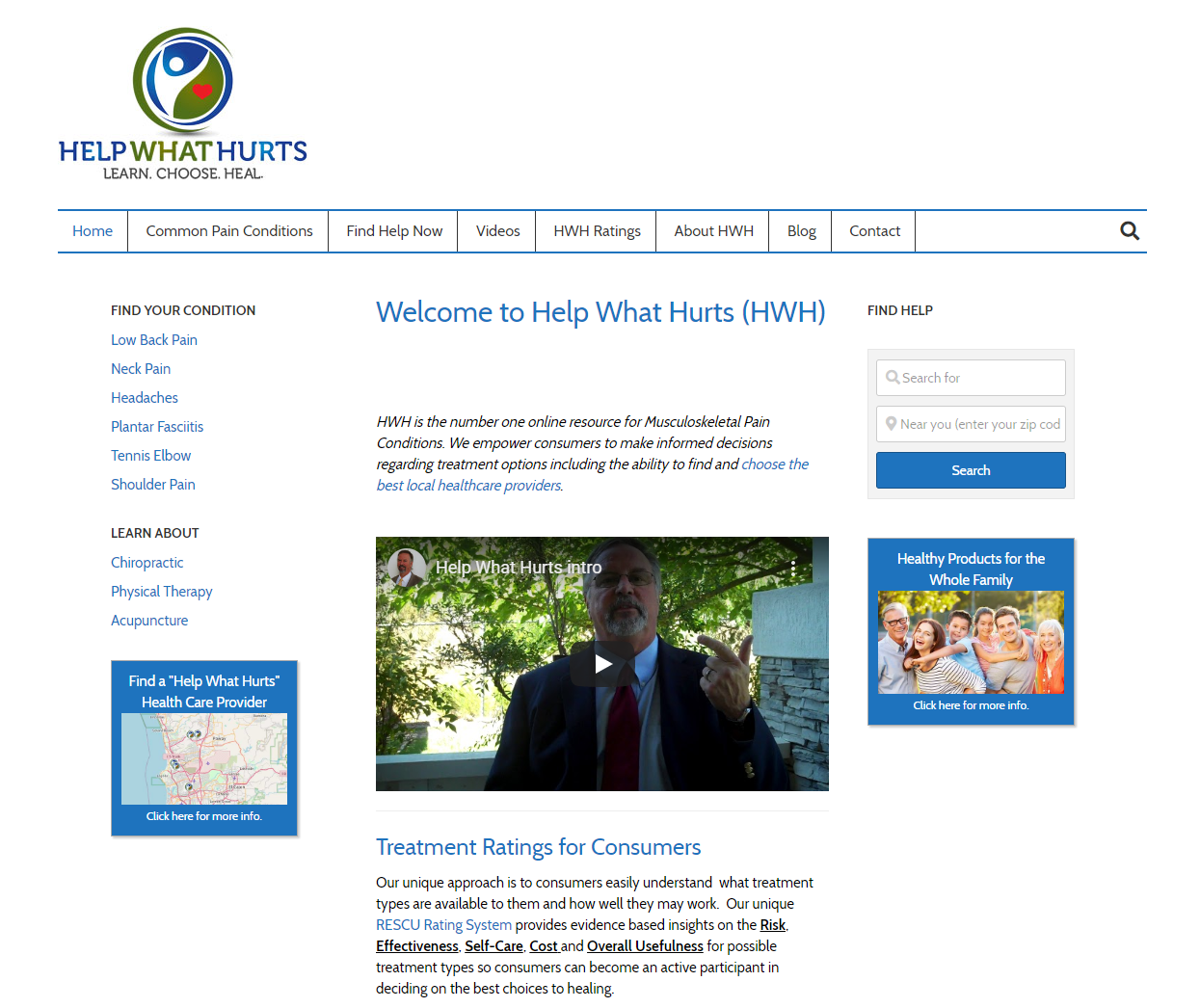 With the internet, collecting information about health conditions and treatment choices is like “sipping from a fire hose.” There is simply too much information for the average person to sift through to make a decision, and much of it is biased, outdated or inaccurate. Help What Hurts is composed of experts with decades of clinical experience in the fields of chiropractic, medicine, acupuncture and physical therapy.